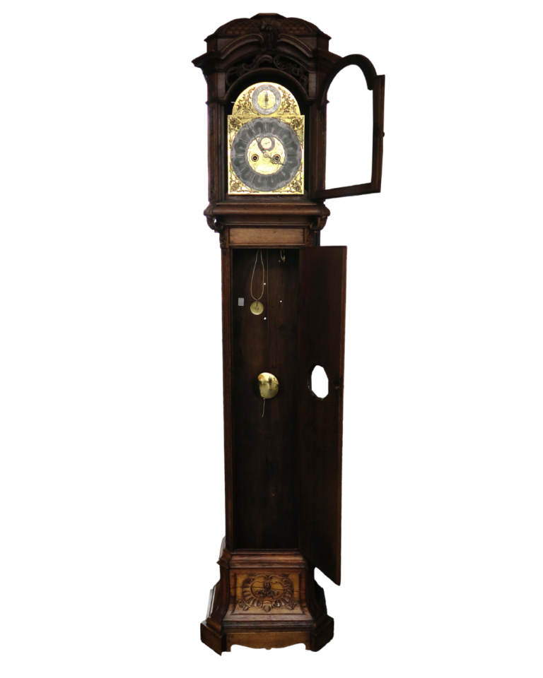 Staand horloge gemaakt door Maastrichtse klokkenmaker François de Beefe tussen 1750 en 1775. Het uurwerk is gemaakt van tin en koper, de kast van de klok van eikenhout